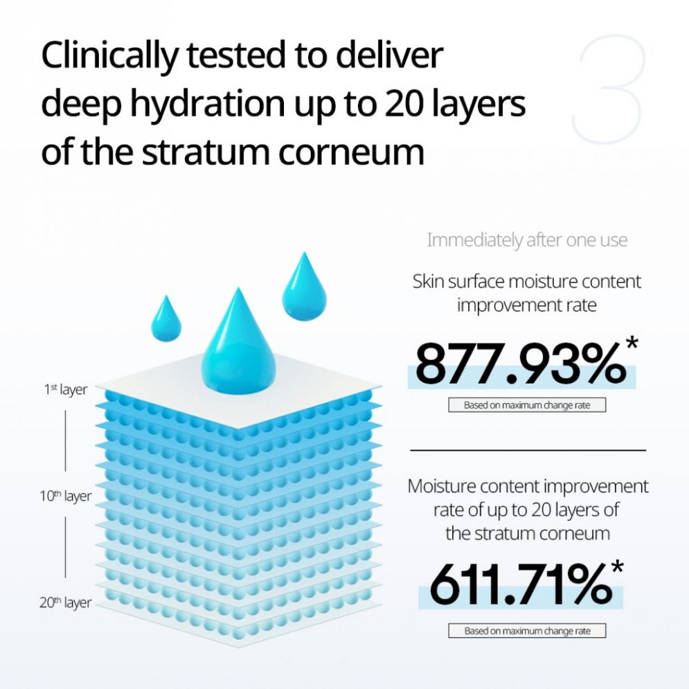 It aids absorption with cica reedle and provides moisture radiance with moisture radiance synergy ingredients. HA-nano capsules are delivered to the skin using deep hydration technology. With nano capsules that are 3000 times smaller than pores, you can feel the overwhelming moisture glow that never dries out.
