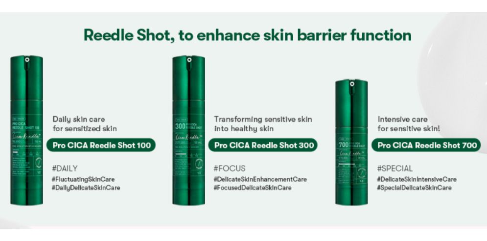 This Reedle Shot is a night care product used in the first step after cleansing. It boosts the skin with VT’s proprietary ingredient, Cicari, while making dry, delicate skin clear and comfortable with Cicahyalo-Gen. The only product that can increase the frequency of use is the reedle shot 100. Even if the reddle shot 300 and 700 are effective after use, be sure to follow the cycles of 3 days. Do not use reedle shot 100, 300, and 700 at the same time. 50$ Reedle shot/skincare/serum